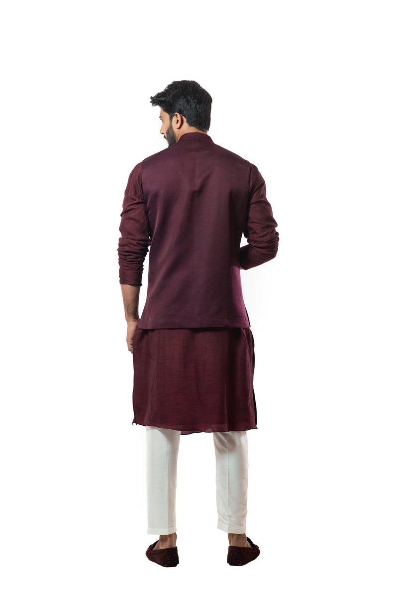 Nehru Jacket and Kurta - Wine, Pant pajama- Cream