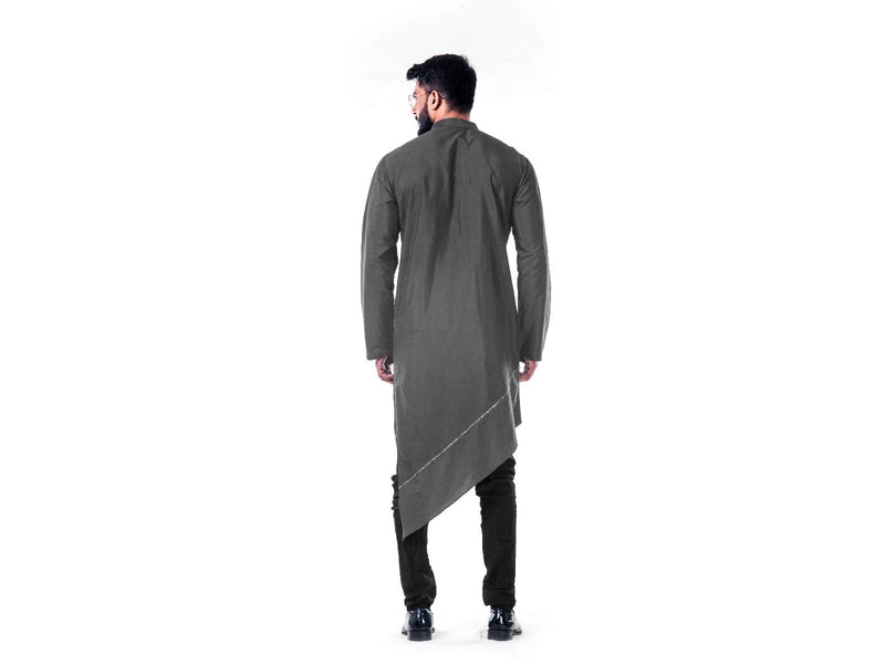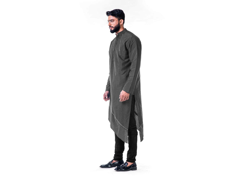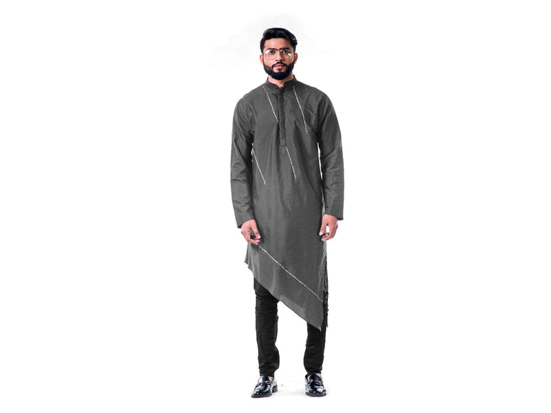 Grey Asymmetrical Hemline Embroidered kurta Set