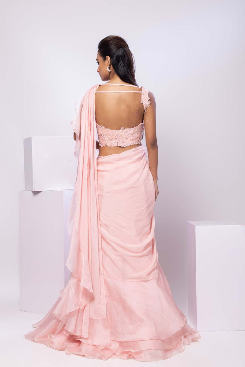 Turn it up with a not-so-simple combination of pink lehenga with silver embroidered blouse. The figure hugging cut of the lehenga skirt with attached palla unifies the look ensuring you look exquisite everytime.