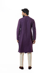 Plum draped kurta with bundi buttons comes with pant pajama. Kurta Length is 45'".**The color may slightly vary due to screen lighting.