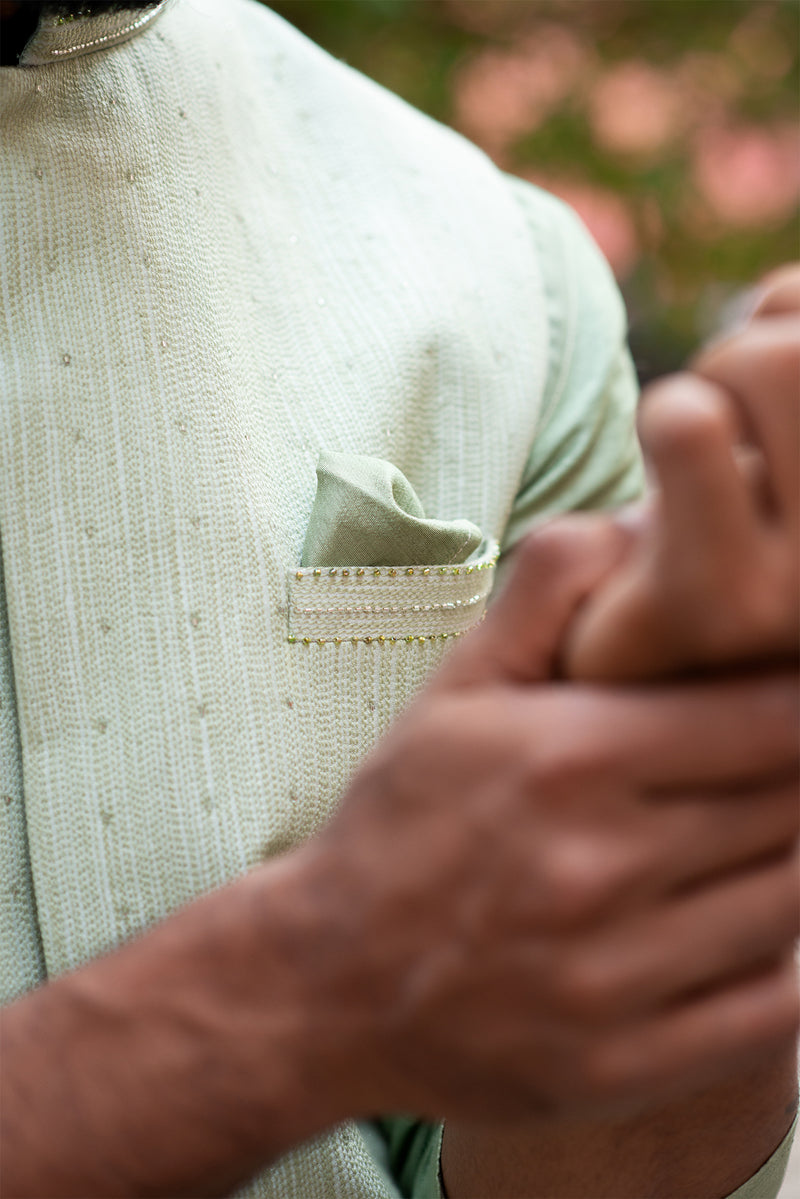 Nehru- Mint green, Kurta- Moss Green, Pant pajama- Beige |